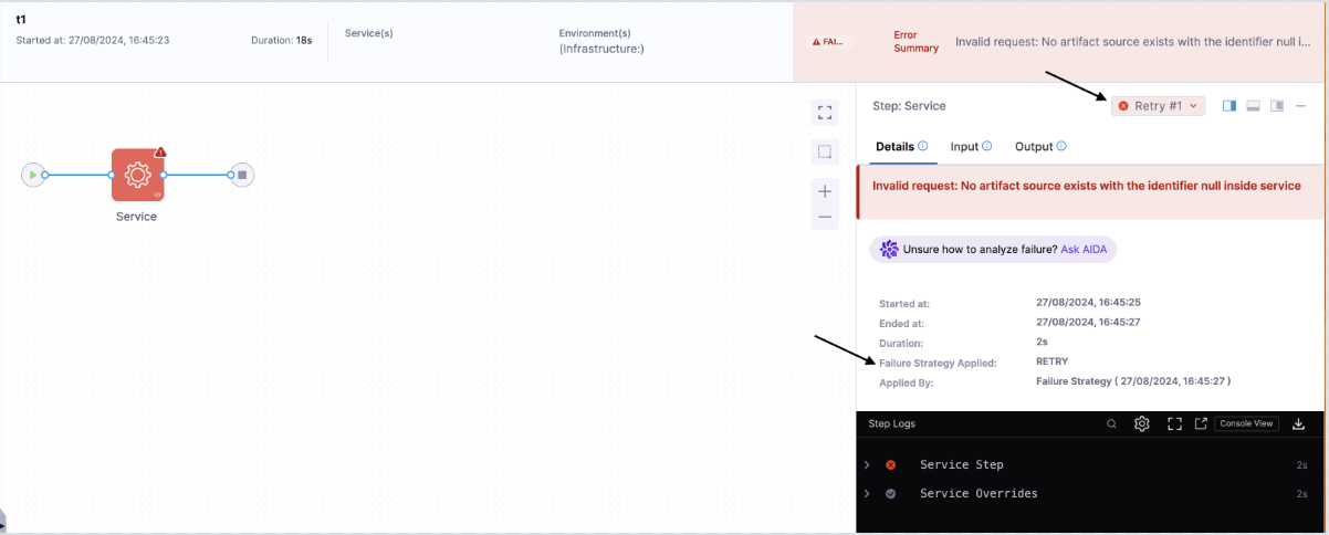 ). As a result, the step will fail. The failure strategy is configured to retry