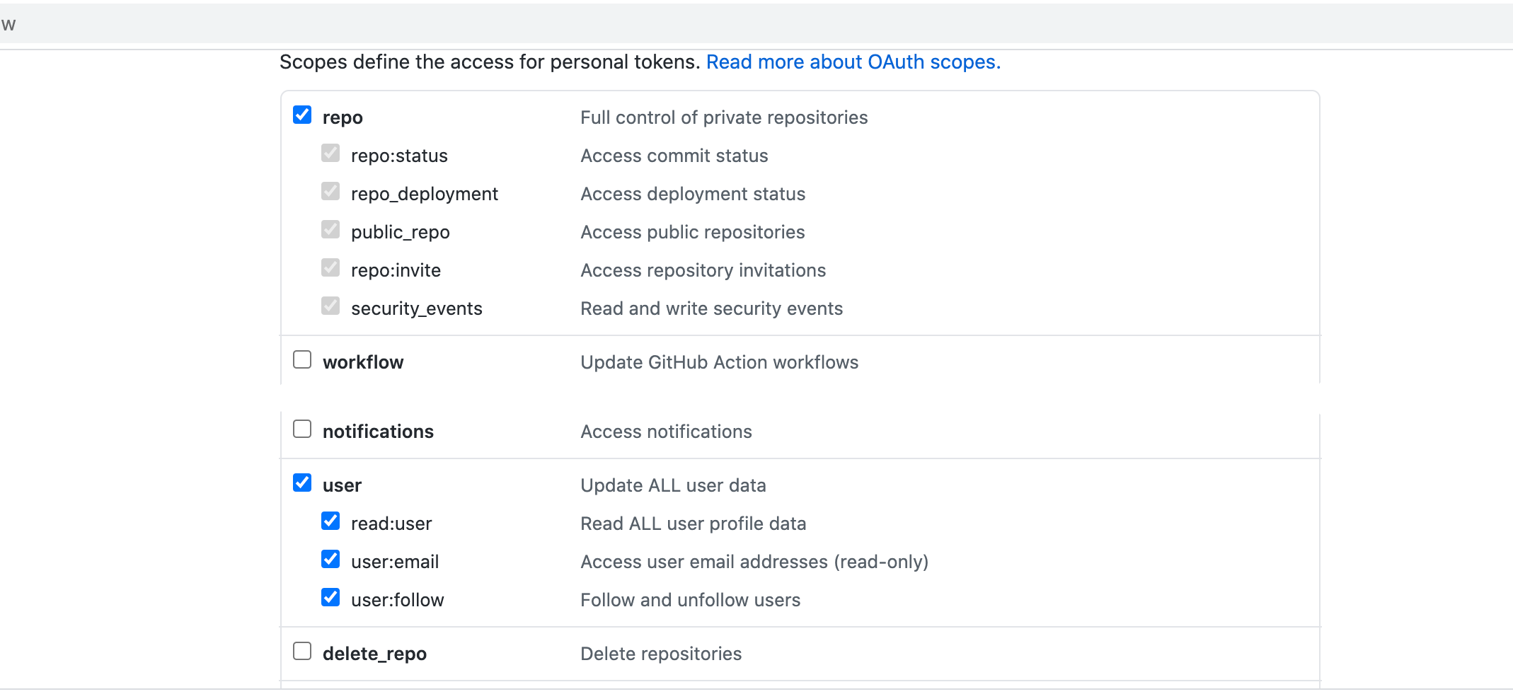 • Supported Methods: username and Personal Access Token (PAT). For information on creating PAT in GitHub, see Creating a personal access token.