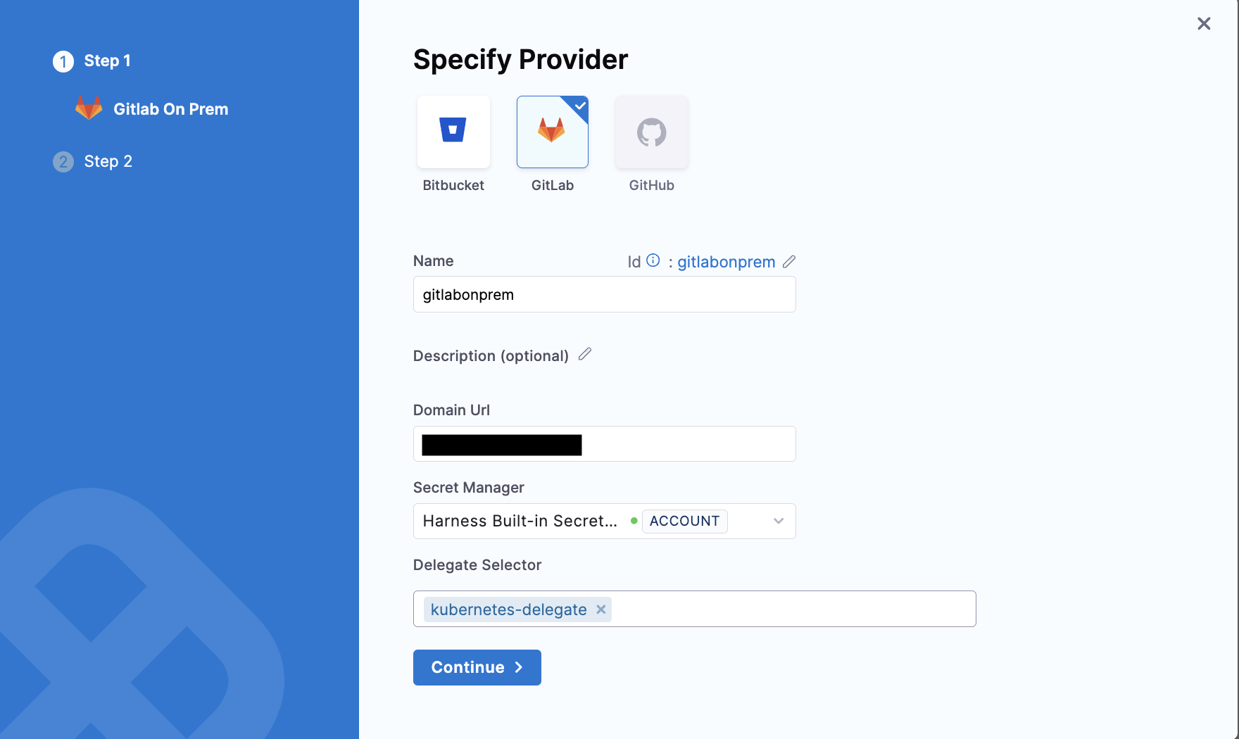 3. Specify the Secret Manager. This is where you have the access token related to the Gitlab stored.