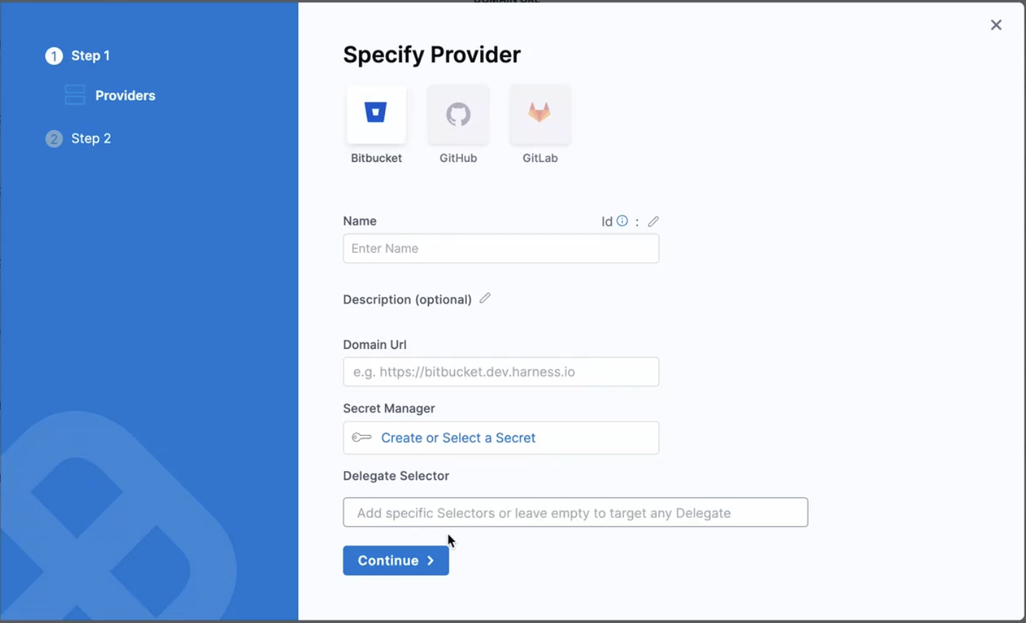 3. Specify the Secret Manager. This is where you have the access token related to the BitBucket stored.