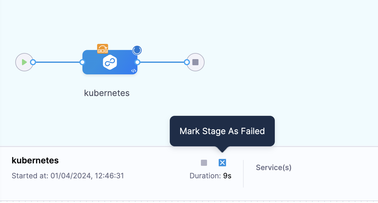 You can mark a specific stage as failed during pipeline execution by selecting the Mark Stage As Failed
