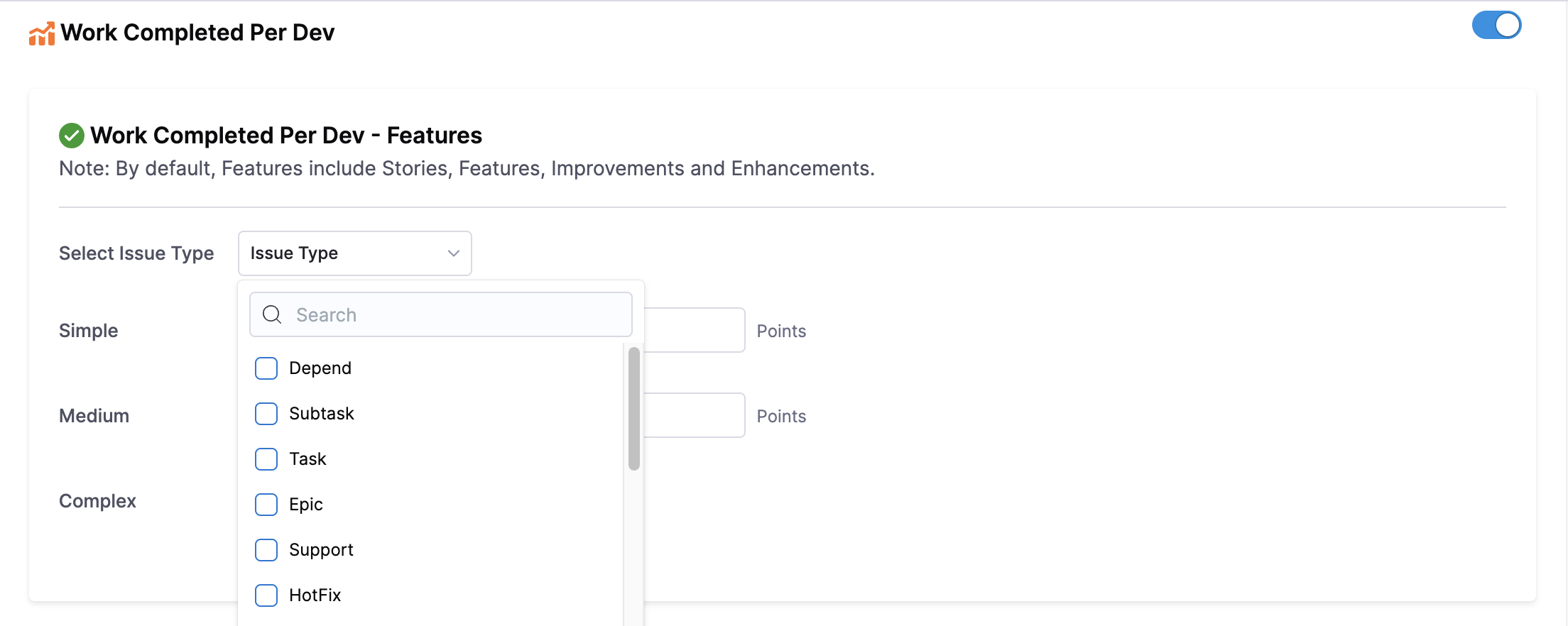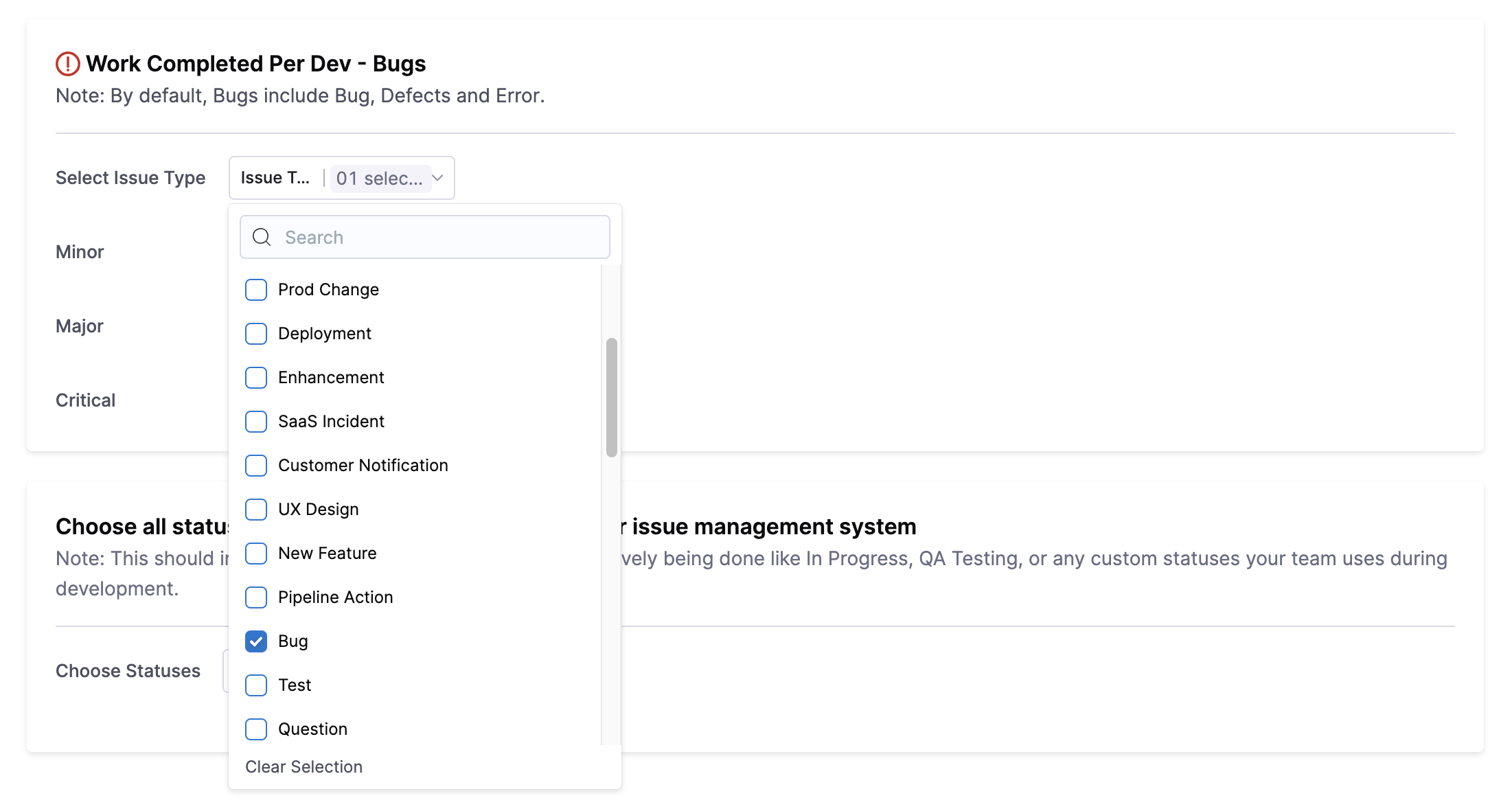 Use the dropdown menu to select an issue type or multiple issue types (e.g.