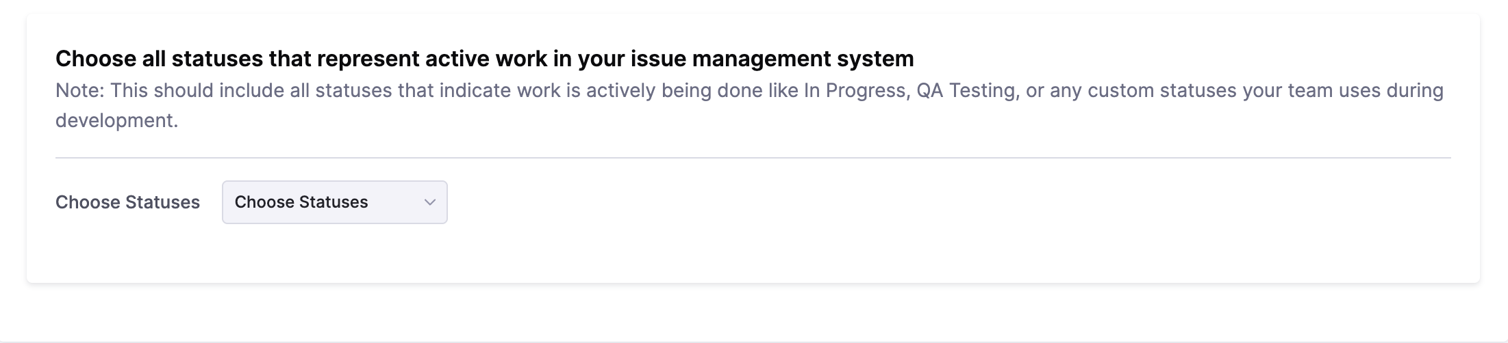 Select statuses from your issue management system that represent development phases (e.g. In Progress