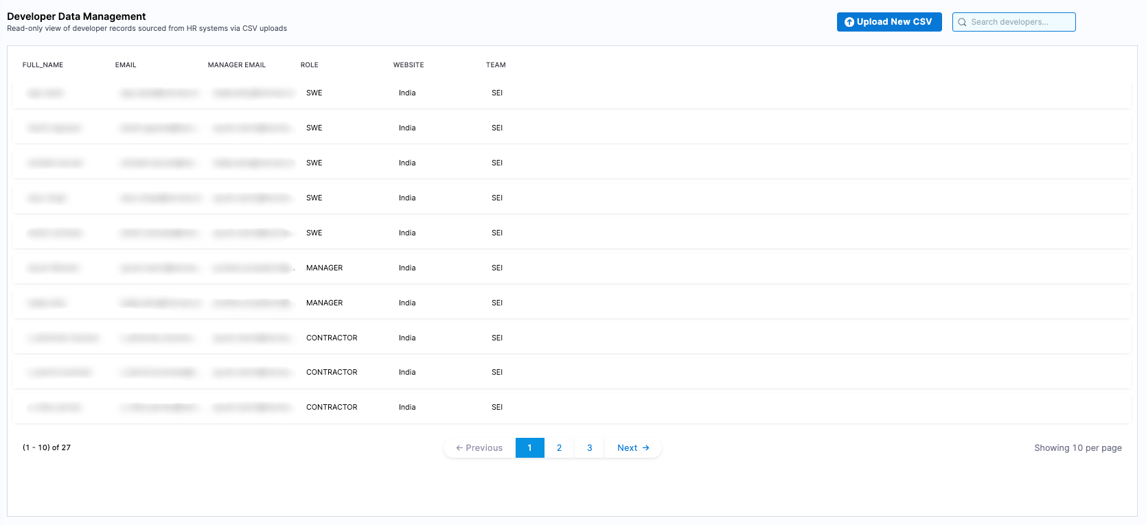 SEI allows admins to explicitly define (import) the list of Developers for whom Insights must be generated. All Developers in this list explicitly consume a Developer license. These Developers may never login to the Harness Platform, but they still consume a license by virtue of having Insights generated for their engineering-related work. Insights are often be accessed by management or engineering leadership instead.